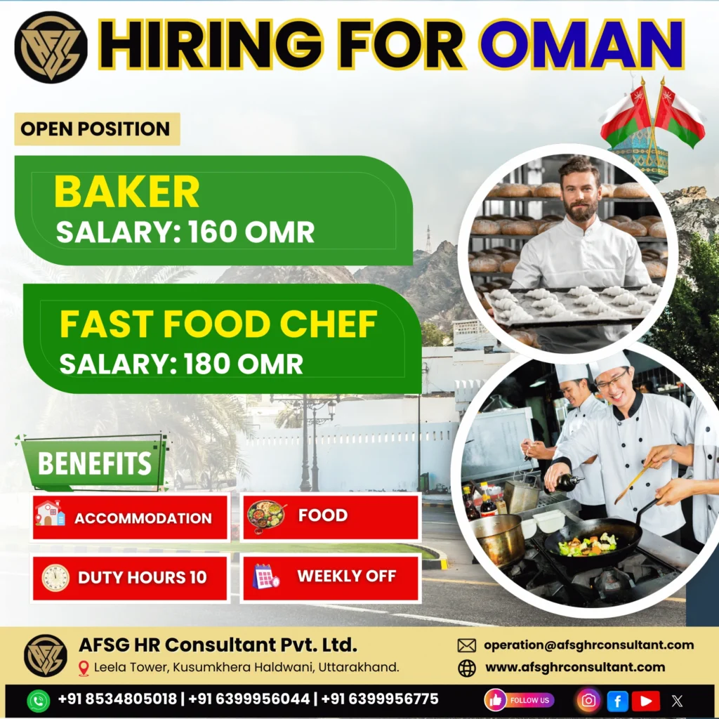 ✨ Hiring for Oman – Baker & Fast Food Chef Jobs